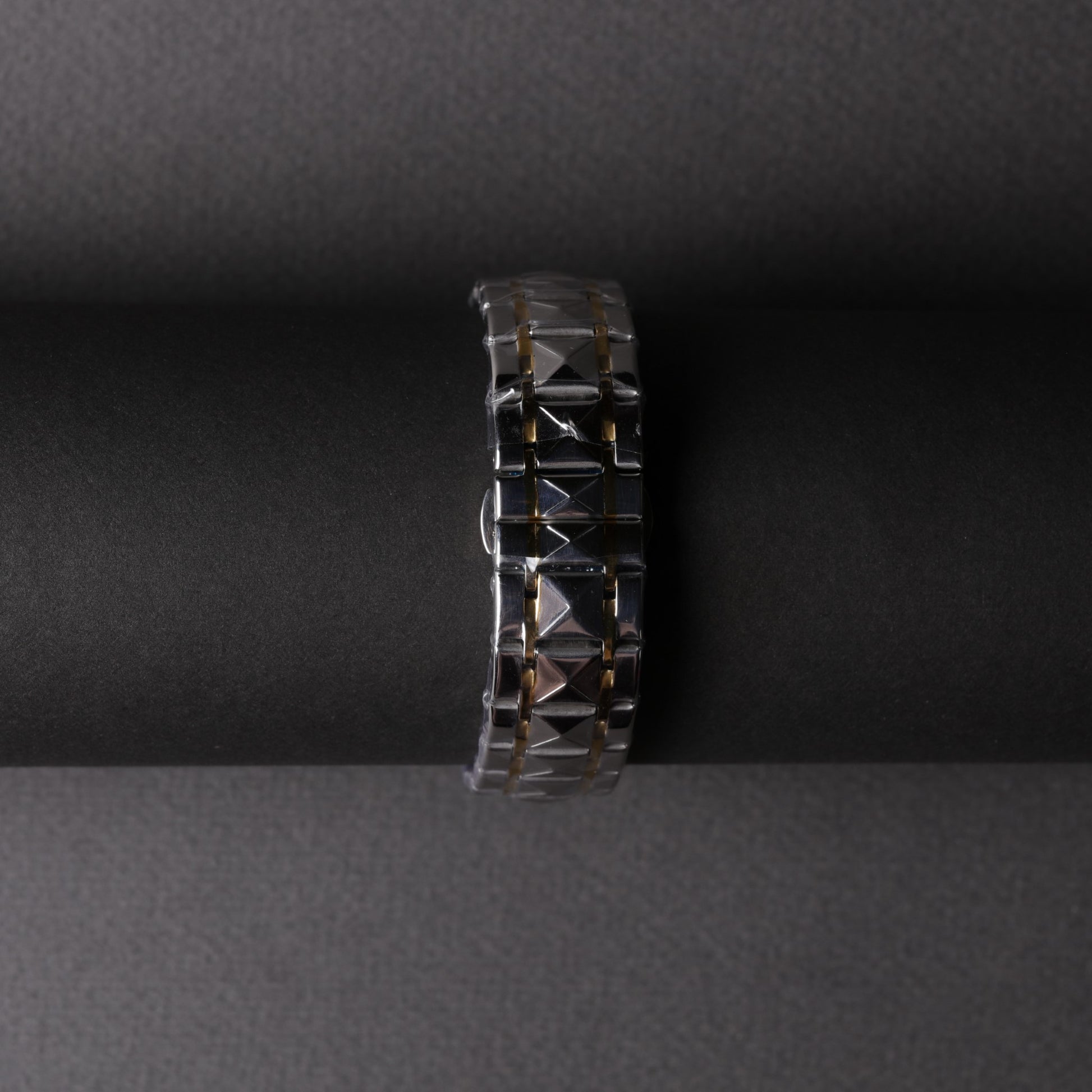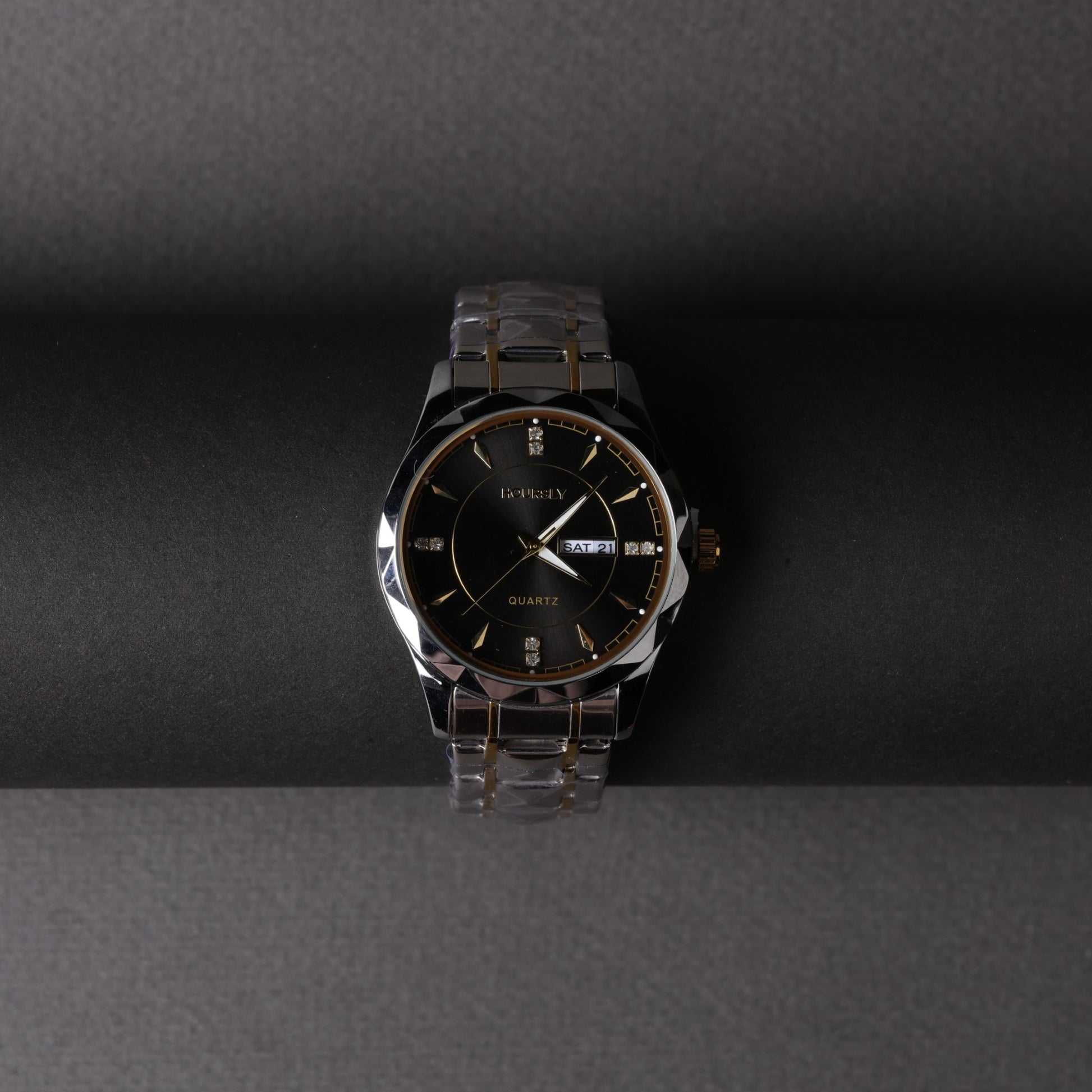 A bold yet refined design, the Eclipse Majesty showcases a deep black dial enhanced by luminous gold markers, encased in a gleaming silver and gold strap. Ideal for evening wear or commanding attention at any event, this timepiece is a tribute to timeless sophistication.